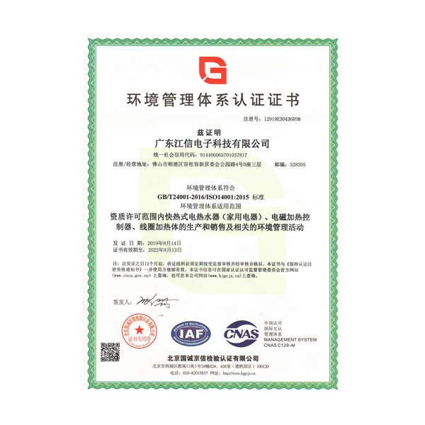 環(huán)境管理體系認(rèn)證證書