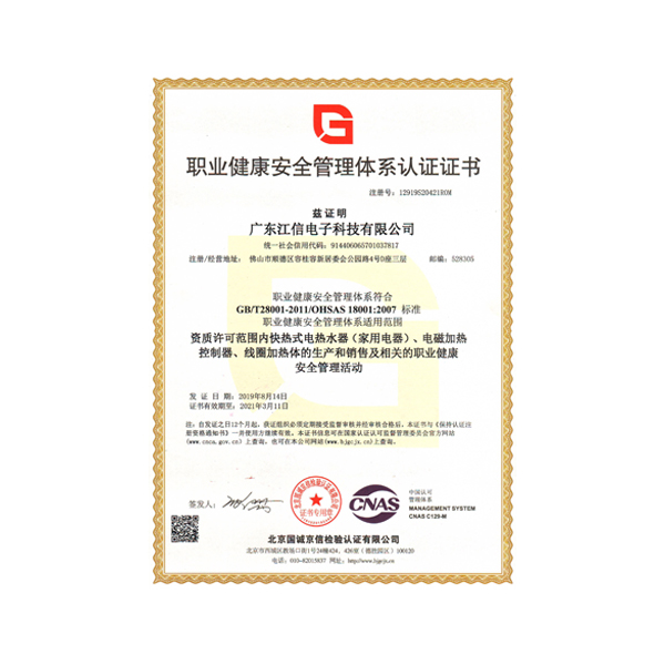 職業(yè)健康安全管理體系認(rèn)證證書