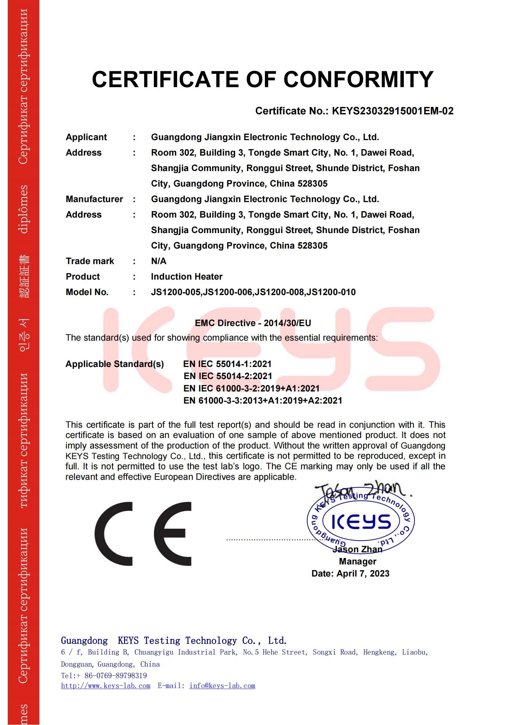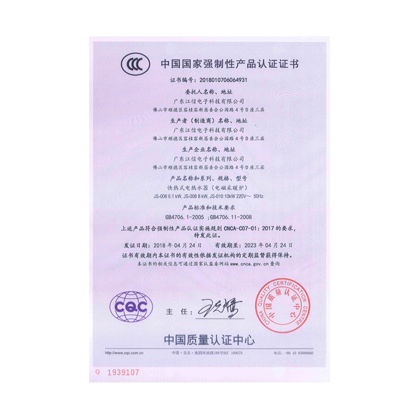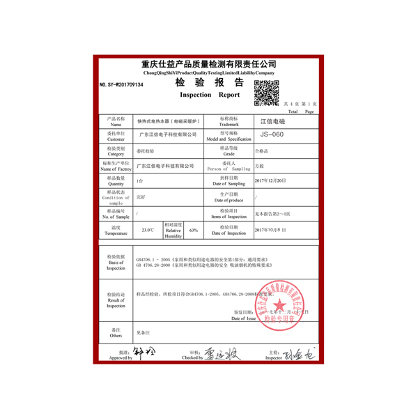電磁爐合格證書