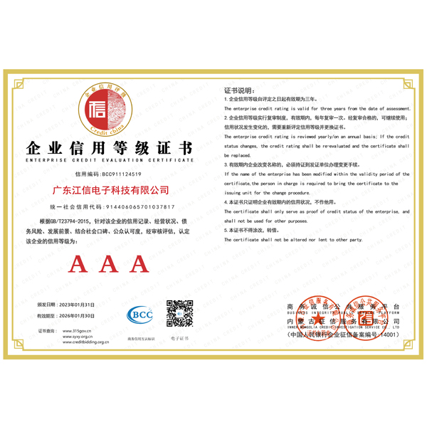 企業(yè)信用等級證書AAA