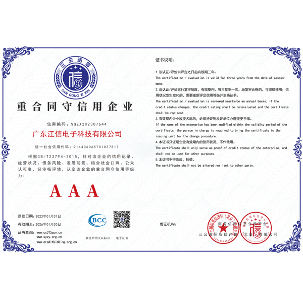 秉承“科技創(chuàng)新,軍工品質(zhì)”的宗旨,鄭重承諾整機(jī)十年壽命保證,一年免費(fèi)保養(yǎng),終身維護(hù)。相信有您的關(guān)心與支持,有我們孜孜不倦的努力,江信電子將與您一起邁入輝煌的未來。